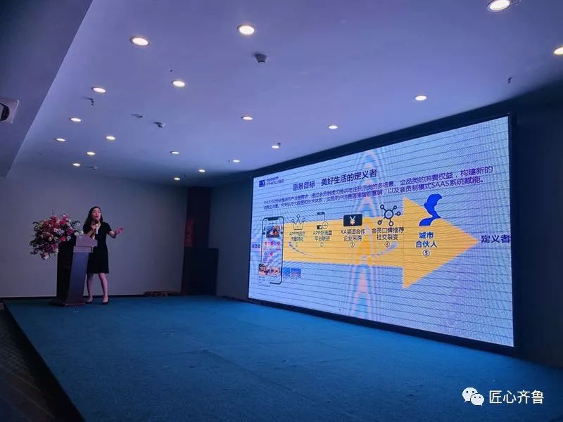 上海悅會(huì)信息科技有限公司城市合伙人項(xiàng)目負(fù)責(zé)人 楊軼男 女士上臺(tái)做悅會(huì)城市合伙人項(xiàng)目講解